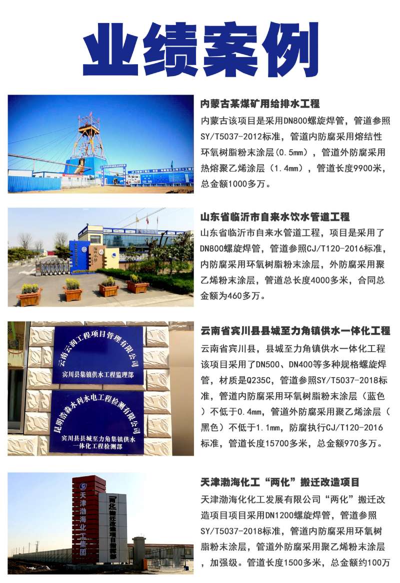 產(chǎn)品規(guī)格:DN100-DN1800 鋼管材質(zhì):Q235或Q345 涂層材料:高密度聚乙烯,食品級環(huán)氧粉末 &nbs